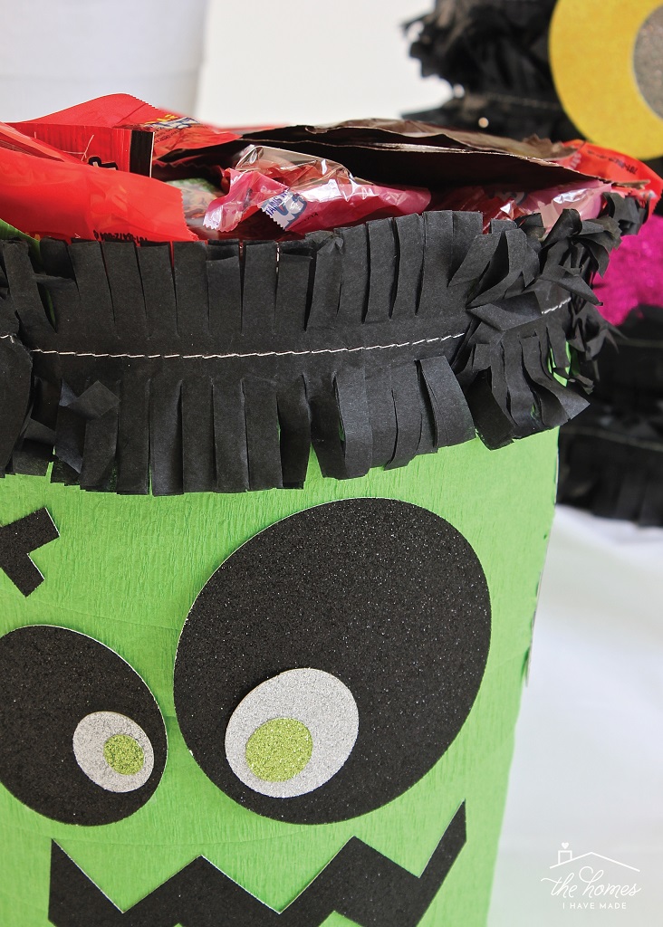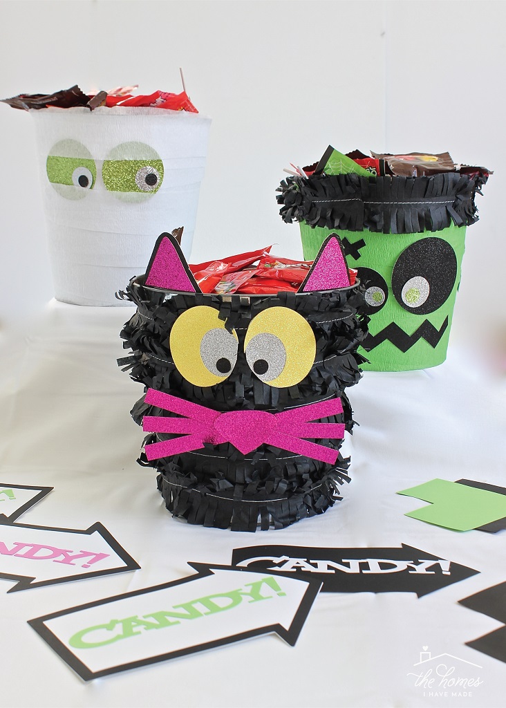 All three of these treat buckets are made using streamers right off the party store shelves, including the black fringe streamers.