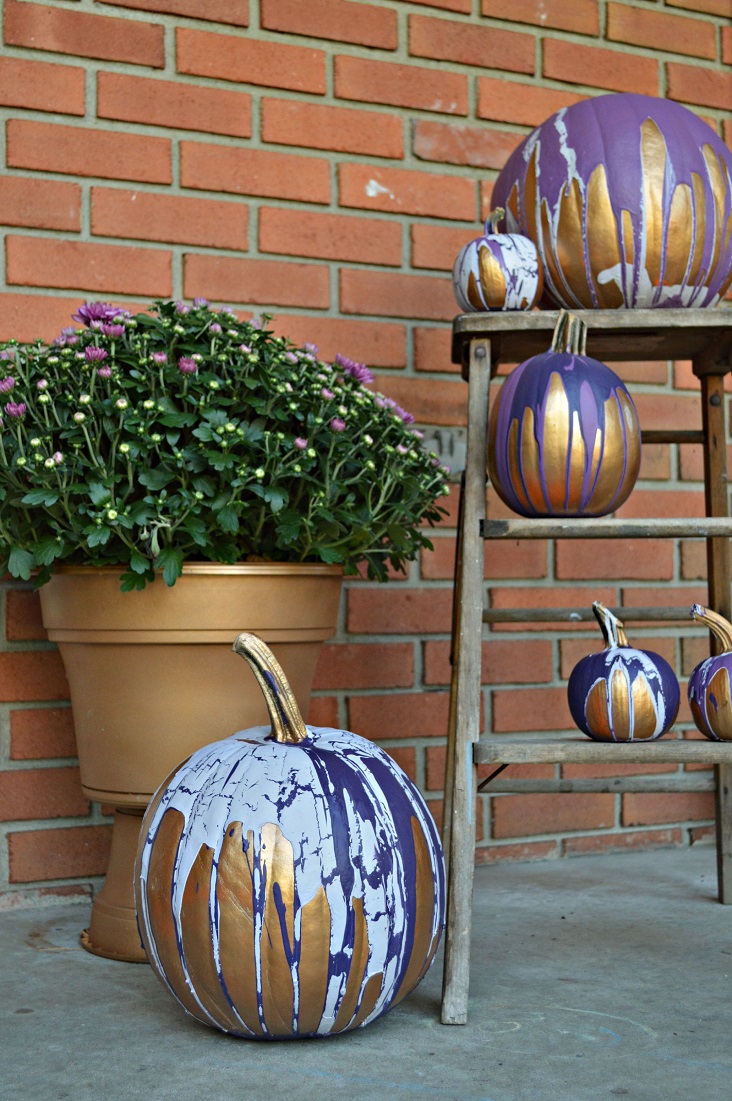 Project suggestion: Make a quick and cheap Thanksgiving centerpiece by painting leaves and pumpkins with metallic spray paint.