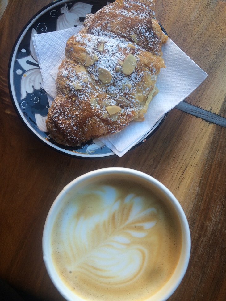 Order: Black & tan and an almond croissant.