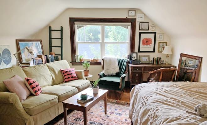The renter describes her style as "Books, books, books, plants, books." READ MORE...