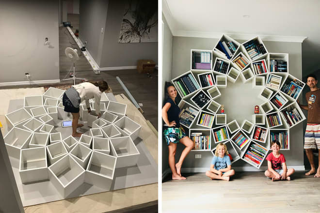 This Couple Built an Intricate Bookshelf Out of 36 Boxes